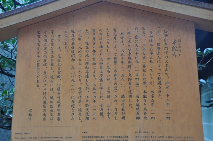 (いわゆる本能寺の変)その際、堂宇を焼失した。