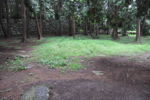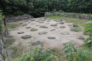 | 天主閣の礎石址。 ここは地下1階。 1階は石垣の外側。巨大なお城であった。 |